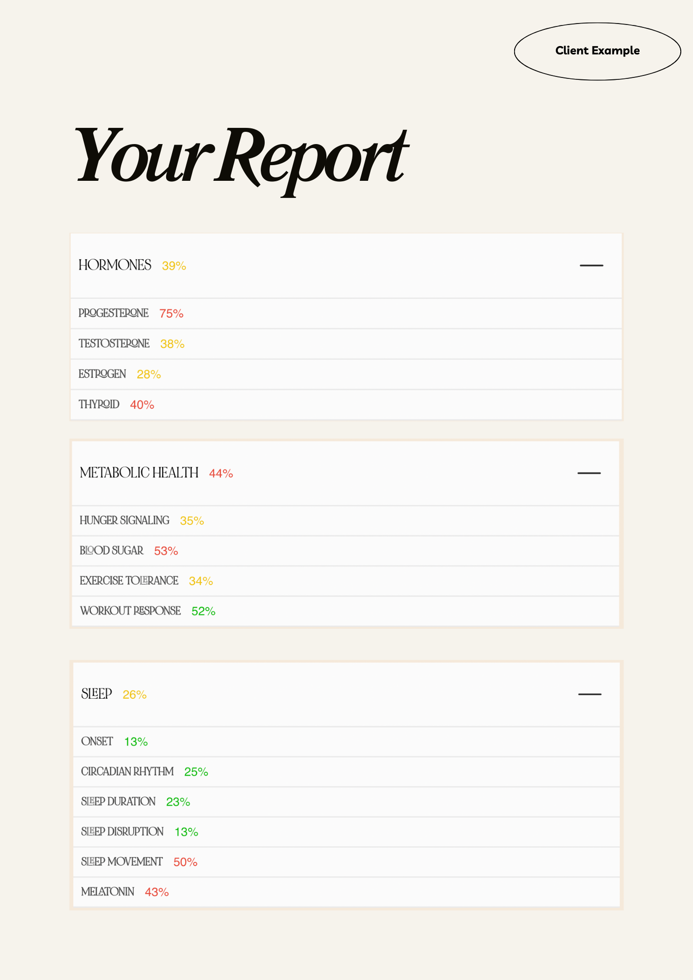 In your 1:1 session, we’ll guide you step-by-step in turning your results into a clear, actionable plan tailored to your lifestyle, goals, and unique biology. You’ll walk away empowered—with everything you need to create lasting change.